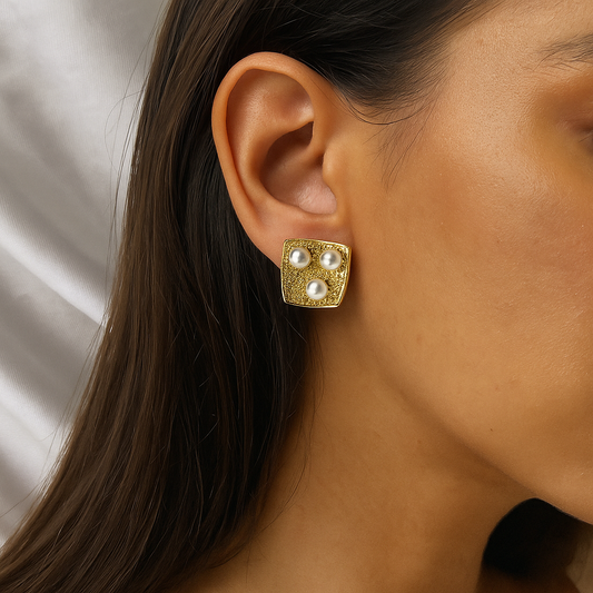 Pearl Square Stud Earrings