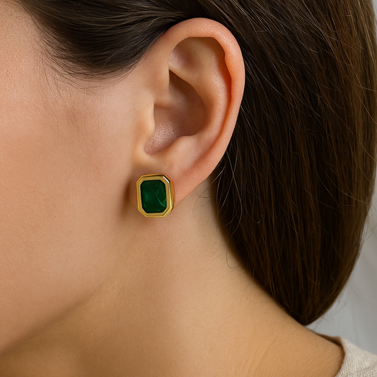 Emerald Green Stone Stud Earrings