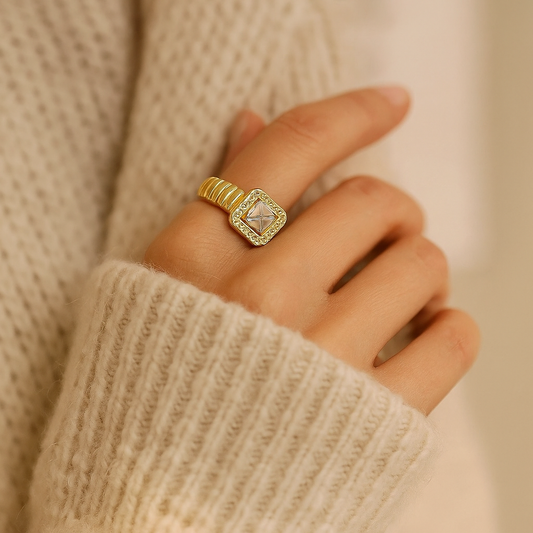 Square Crystal Adjustable Halo Ring