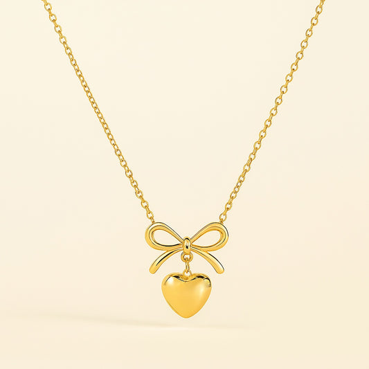 Bow and Heart Pendant Necklace