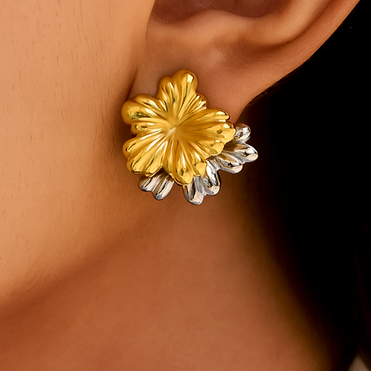 Two-Tone Floral Stud Earrings