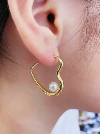 Heart-Shaped Pearl Hoop Earrings